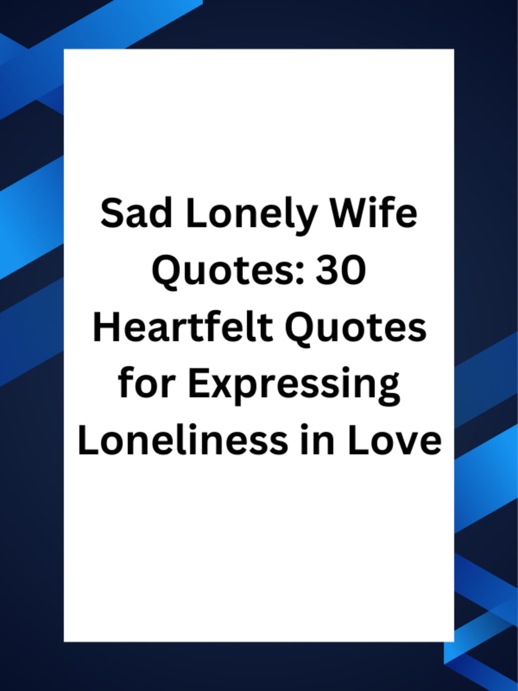 Here are 30 sad lonely wife quotes that capture the pain, sadness, and complexity of feeling alone in a relationship. Whether you’re looking for deep sad quotes, heart-touching sad love quotes, or even a touch of humor, these quotes will resonate with your experience.
