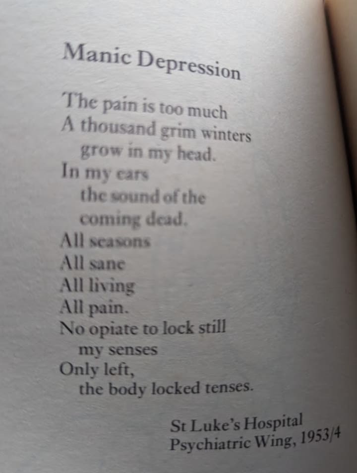 I love that poem, but the book addresses many subjects, such as his war experiences and his depression.