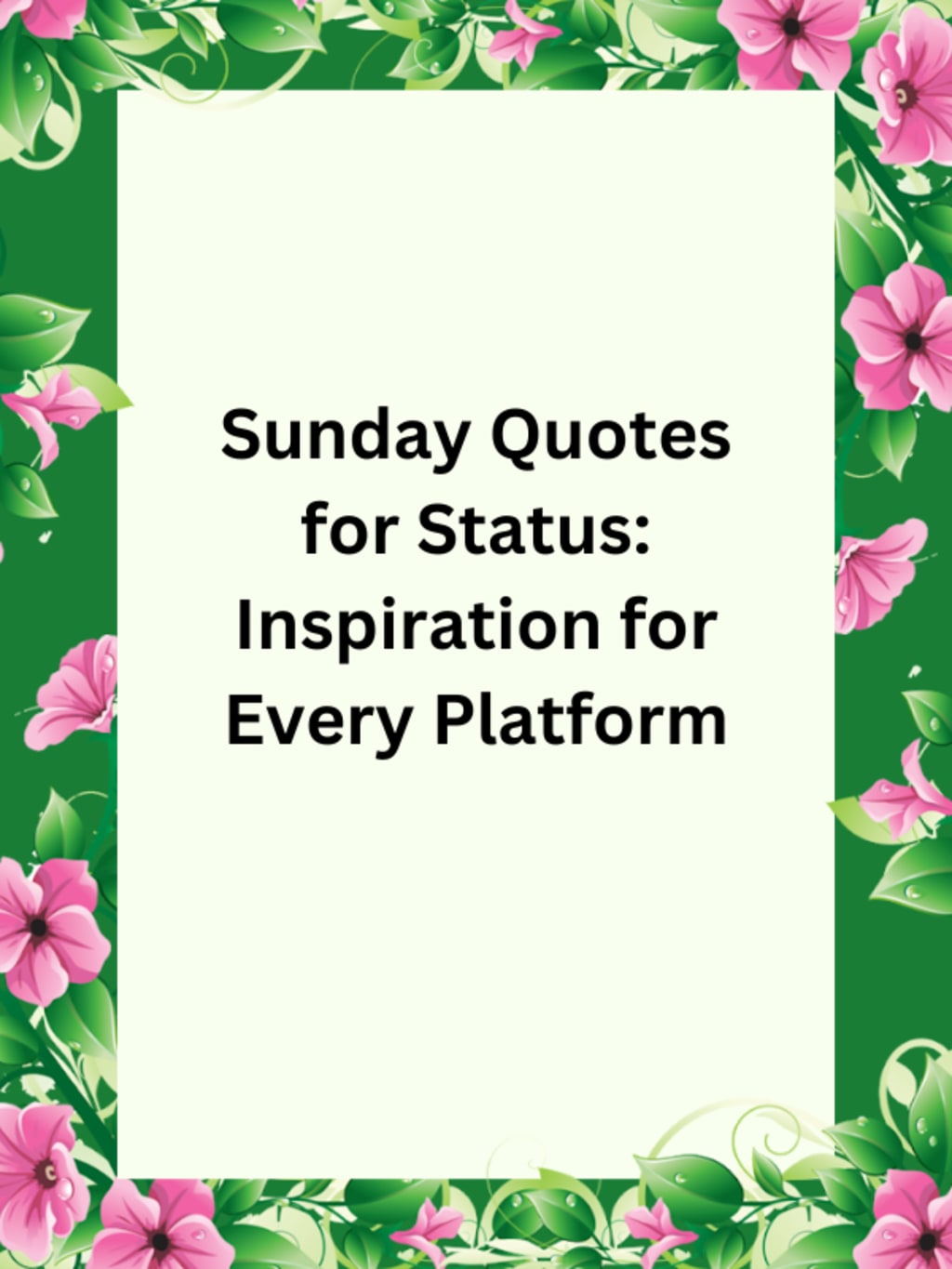 Sharing motivational or thoughtful Sunday quotes on your status is a great way to set a positive tone for the week ahead. Below are some of the best Sunday quotes you can use to uplift and inspire.