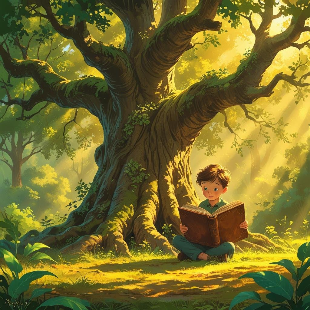Underneath the tree, Sam found an old, weathered book. He opened it and found stories of adventure, friendship, and magic. Every day, Sam would return to the tree, lose himself in the stories, and let his imagination run wild. The tree became his sanctuary, the book his treasure.