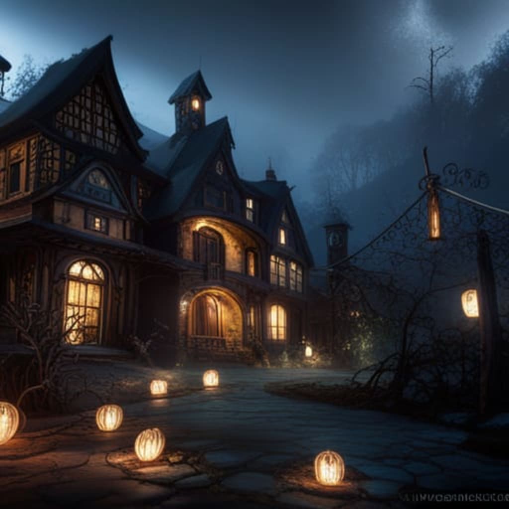 In the heart of a desolate forest, shrouded in mist, stood an ancient mansion known as Hollowbrook Manor. Its dilapidated façade and overgrown gardens gave it an eerie presence that sent shivers down the spines of those who dared to venture near.For generations, tales of strange occurrences and tragic deaths had plagued the manor's history. It was said to be cursed by the spirits of its former occupants. No one in the nearby town dared to approach it after nightfall.One stormy evening, Sarah, a curious young woman fascinated by the supernatural, decided to investigate the legends surrounding Hollowbrook Manor. Armed with a flashlight and a journal, she entered the mansion's creaking doors.The interior was a labyrinth of decaying rooms, each more unsettling than the last. As she explored deeper, the temperature plummeted, and her breath formed ghostly plumes in the air. Unseen whispers echoed in the shadows, and the walls seemed to pulse with an ominous energy.Sarah reached the grand hall, where a towering staircase spiraled upward. She heard a mournful cry from above, and her heart raced. Ignoring her fear, she climbed the stairs, her flashlight revealing eerie portraits of long-dead family members.In an attic room, Sarah discovered an old diary, its pages filled with the desperate scribbles of a tormented soul. It spoke of dark rituals, curses, and a forbidden love that had torn the family apart.Suddenly, the room grew icy cold, and Sarah's flashlight flickered. Shadows danced around her, and the diary flew open, pages turning wildly. She gasped as a spectral figure materialized before her, a woman in a tattered wedding gown. It was the ghost of Eleanor, the cursed bride.Eleanor's mournful gaze pierced Sarah's soul as she recounted her tragic tale. She had been wronged, her love forbidden, and her life ended in anguish. Now, her spirit was trapped within the cursed manor, seeking redemption.Sarah promised to help Eleanor find peace, vowing to uncover the truth behind the curse. Together, they delved deeper into the manor's secrets, facing malevolent spirits and unlocking hidden passages.As they neared the heart of the mystery, they discovered a hidden chamber containing a cursed amulet that had fueled the malevolence within Hollow brook Manor. With great courage, Sarah and Eleanor destroyed the amulet, breaking the curse.In a blinding burst of light, the mansion shook, and the spirits that had haunted it for centuries were released, finding peace at last. Hollow brook Manor, once a place of darkness, slowly crumbled into ruins, leaving the forest to heal.Sarah, forever changed by her encounter with the supernatural, left the forest that day, knowing she had helped Eleanor and the other lost souls find their way to the afterlife. The legends of Hollowbrook Manor would continue to haunt the town, but now, they held a glimmer of hope and redemption in their midst.