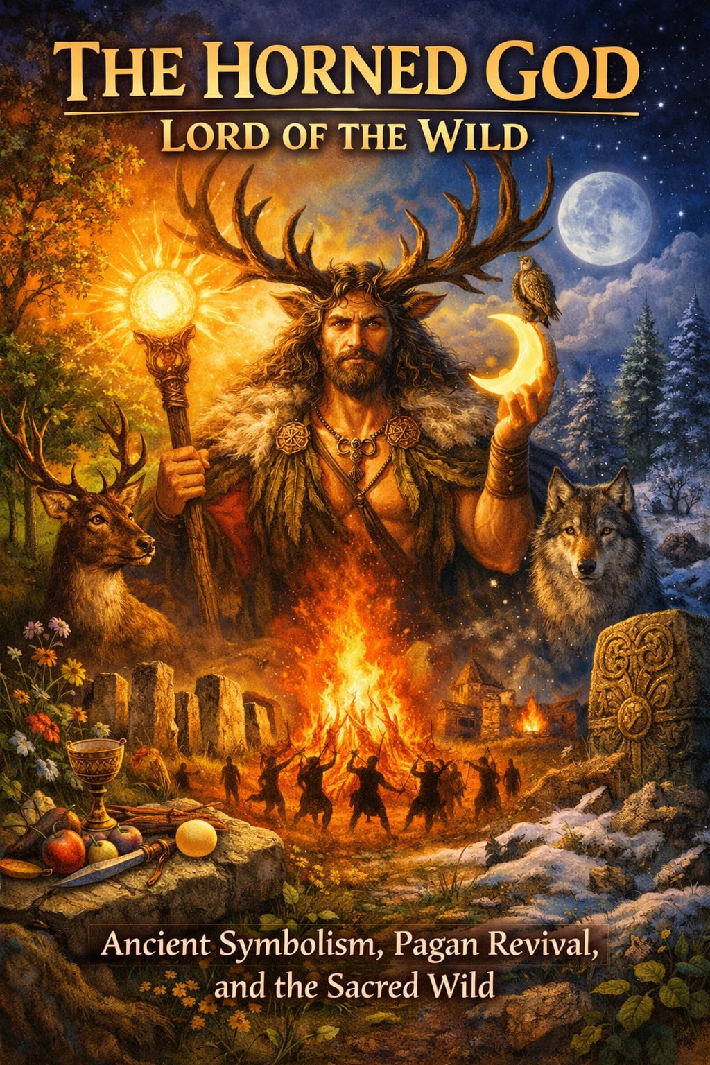 Across Paleolithic cave walls, Neolithic standing stones, Iron Age reliefs, ritual masks, and contemporary devotional spaces, a recurring figure emerges with remarkable consistency. Antlers rise from a human brow. Animal limbs merge with upright posture. Surrounding imagery evokes forests, herds, sexuality, decay, seasonal return, and the tension between cultivation and wilderness. Known in modern discourse as the Horned God, this figure represents one of the most persistent and multilayered symbols within the religious imagination of Europe and the wider Indo-European world.