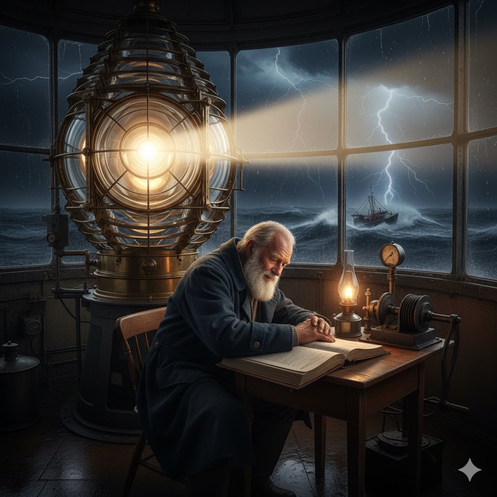 He spent his final weeks performing his duties with a mournful precision, polishing the brass, checking the intricate clockwork, and trimming the wick of the massive Fresnel lens. Each turn of the mechanism, each sweep of the beam across the ink-black water, felt like a farewell. The sea, his lifelong companion, seemed to whisper its own goodbyes in the crashing waves below.