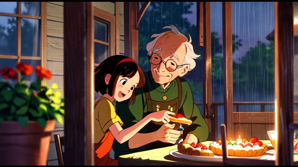 "Grandpa, tell me a story!" Lily begged, her eyes sparkling like the raindrops.