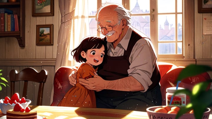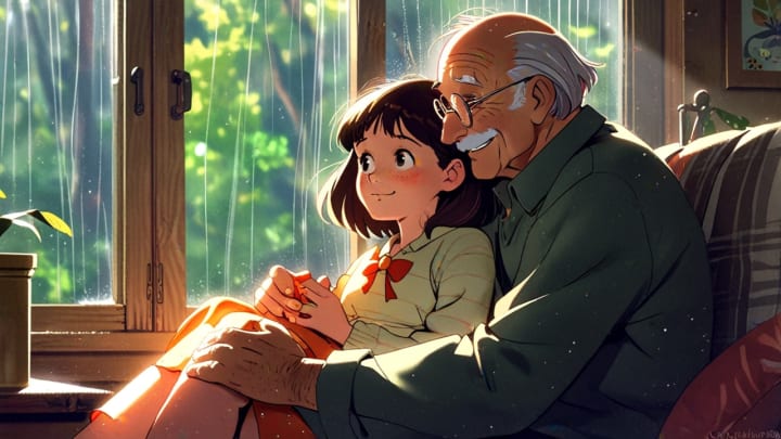Lily loved rainy days. They were perfect for snuggling under blankets with her Grandpa Joe, who always had the best stories and the warmest hugs. Today, the rain was tapping a gentle rhythm on the window, and Lily was curled up in Grandpa Joe's big, comfy armchair.