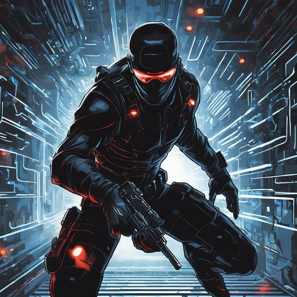 Tonight, his target was a high-tech data vault guarded by the most advanced security system ever built. As he approached the vault, a series of laser grids and motion detectors lit up, creating a complex web of challenges. The Shadow Operative’s heart raced, but his movements were calculated and precise. He slipped through the lasers with the agility of a dancer and disarmed the sensors with deft fingers. The vault's door creaked open, revealing a stack of encrypted data chips.