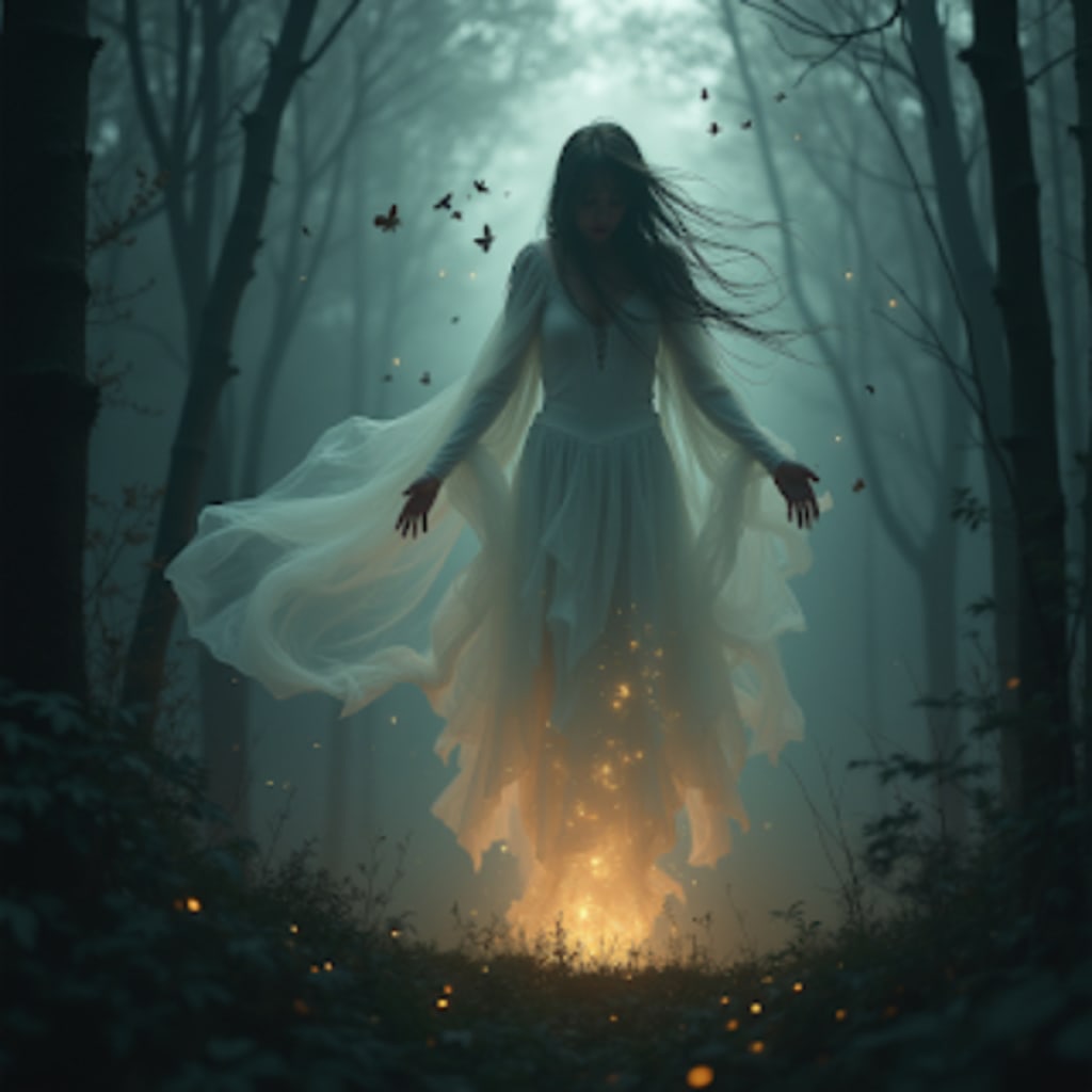 Ali set off into the forest, mocking his friends’ fears. However, as he walked deeper, he sensed something unnatural. The trees swayed as if whispering warnings, and with every step, faint murmurs echoed around him. A chill ran down his spine, and when he peered into the darkness, he saw her—Julia. She was a ghostly figure of sorrow and rage, her presence both haunting and mesmerizing.