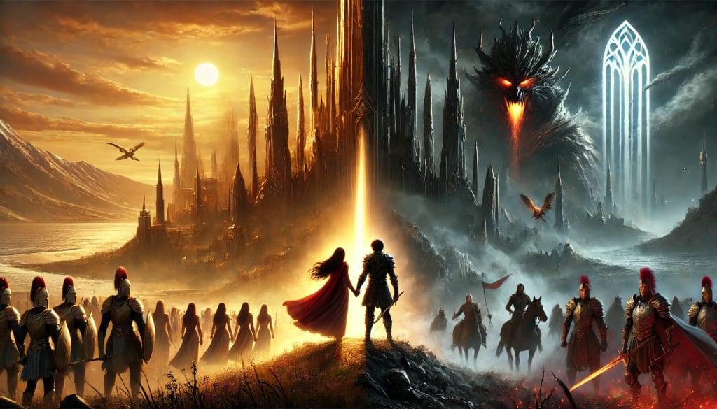 The prophecy began to unfold when a young warrior named Taren from the Kingdom of Trust fell in love with a mysterious woman named Lira, who claimed to have fled the Dominion of Deception seeking refuge. She was beautiful yet distant, with eyes that shimmered like a hidden truth, and though Trust’s citizens were wary of her origins, Taren’s heart insisted on believing her. Lira spoke of her desire to escape the lies of Deception and live in a land where truth could flourish.