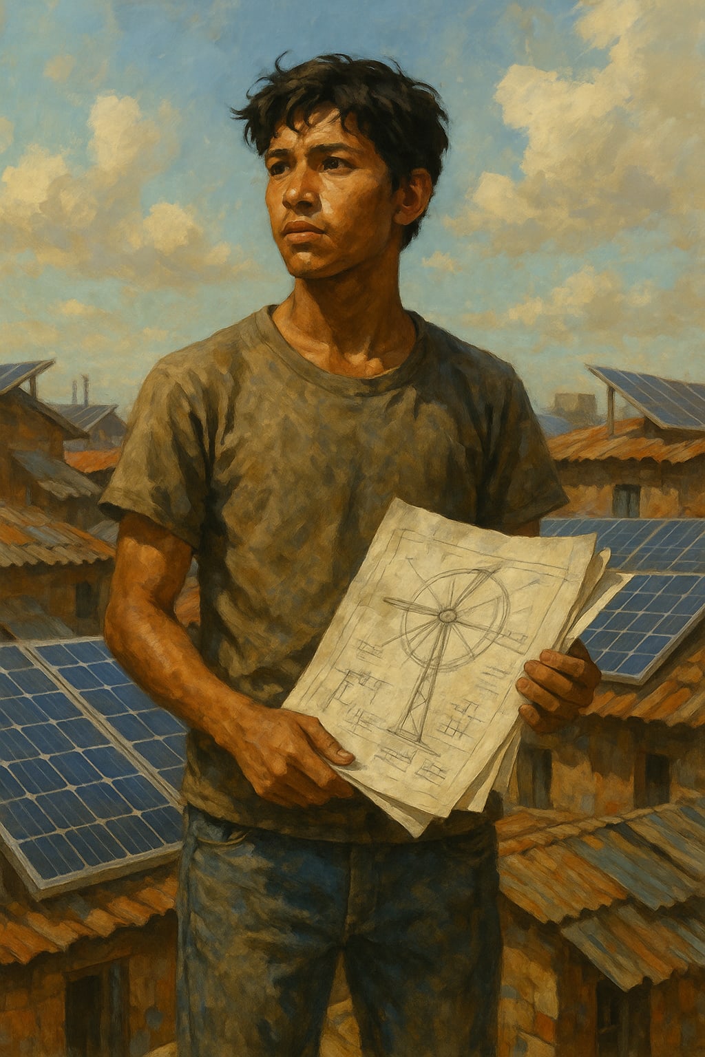 In the dusty town of Solmerra, where clouds almost ever came and hopes vanished as quickly as morning dew, Javi was born in a dilapidated tin-roof home. His mother washed clothes by hand for less than a dollar a day, while his father disappeared in the copper mines. However, Javi? He possessed eyes that never blinked at failure and a mind full of lightning.He used an old blender and broken bicycle pieces to construct a fan-powered buggy when he was seven years old. He connected a solar panel to a single lighting in their one-room house when he was ten years old. By the age of thirteen, he was obsessed with energy. The kind that not only powered lights but also powered lives.