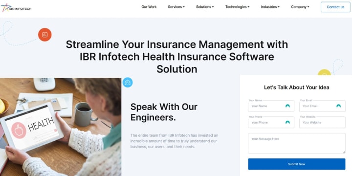 IBR Infotech offers highly advanced and fully customized health insurance software that comes with features like claim management, policy management, data security, appointment scheduling, and many more. This medical insurance software solution can maximize workflow efficiency, reduce error, automate claims, and eliminate potential fraud. IBR Infotech's medical insurance software solution is equipped with multiple benefits including process automation, better decision-making, improved communication, and customer experience.