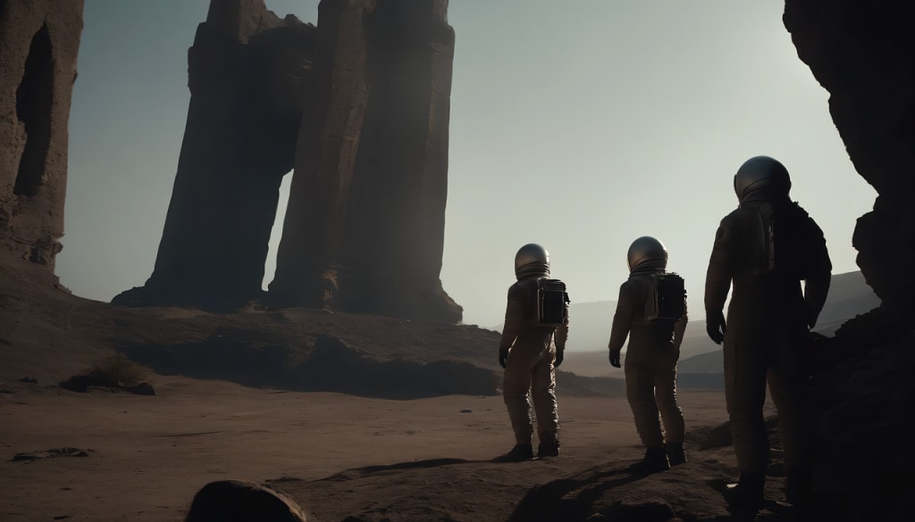 Many were the turbid thoughts on these and other themes which occupied Mini-Flash Juniper as she and her companions exited their ship, which had set down on a planet of everlasting night. All the worlds will have been thus in this near-sunless nowhere, but gibbous gas-clouds looming overhead cast enough of a dim glow to see by. From somewhere in the distance drifted a steady noise, as of industrial manufacture, and Juniper followed the other girls who began to troop in this direction.