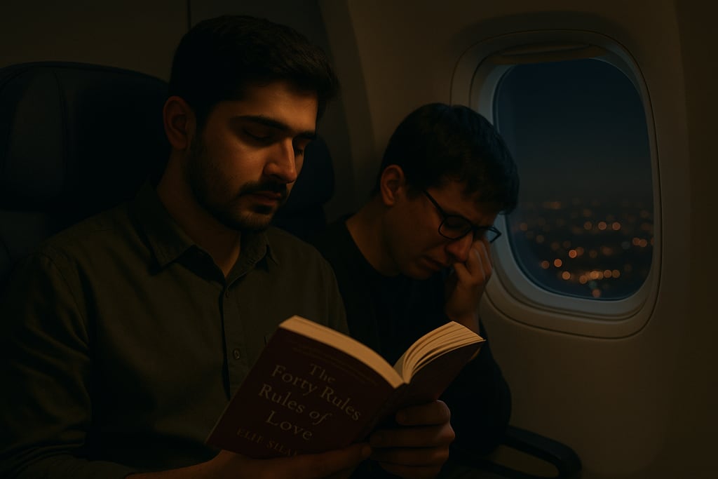 During the flight, I was reading The Forty Rules of Love by Elif Shafak—a book that always brings deep emotions and spiritual reflection. As I turned the pages, I noticed a boy sitting next to me. He wore black glasses, which seemed unusual for a night flight. After a few minutes, I realized he was quietly crying. I felt a strong urge to ask what was wrong, but hesitated. Maybe he was leaving his family behind for a job, or maybe he missed his hometown. I didn’t want to intrude.