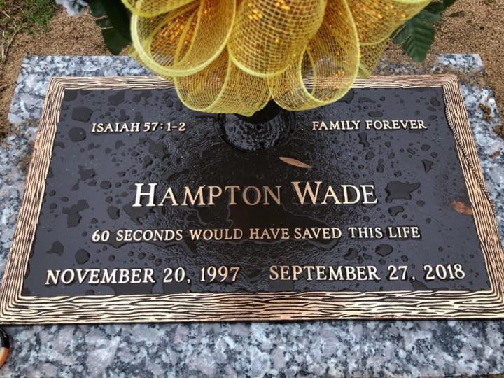 I ask you, reader: Are sixty seconds, or thirty, or ten, five or even one worth a life? What is lost if you arrive at your destination a minute later? The inscription engraved on Hampton's burial marker says Sixty seconds would have saved this life, and it would have.