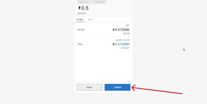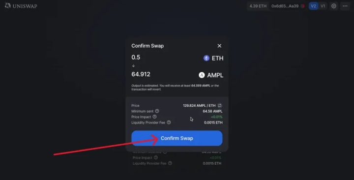 ● Once everything looks good, click on Confirm Swap.