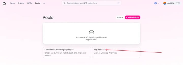 ● Go to the ‘pools’ tab on app.uniswap.org