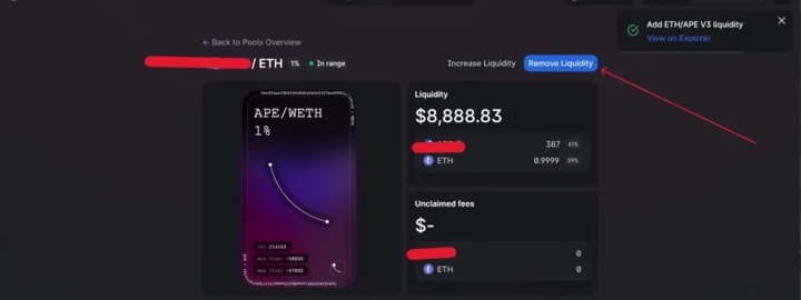 ● Click on Remove Liquidity.
