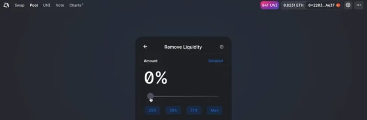 ● Enter the amount of $UNI you want to remove.