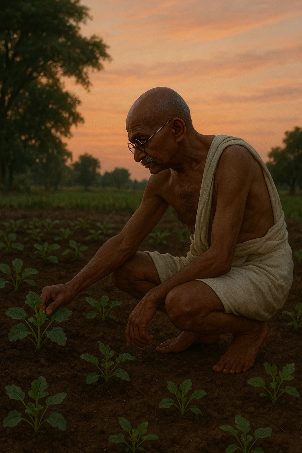 The soil is soft between my fingers this morning. I rise before the sun, the stars still winking overhead, and step barefoot into the small garden the villagers have let me tend while I stay here. It is not a grand field. It grows no great bounty. But in the gentle sprouts of okra, mustard greens, and tuvar dal, I see the rhythm of service, of dharma. The earth, humble and enduring, reminds me of our people—trod upon, yet full of life.