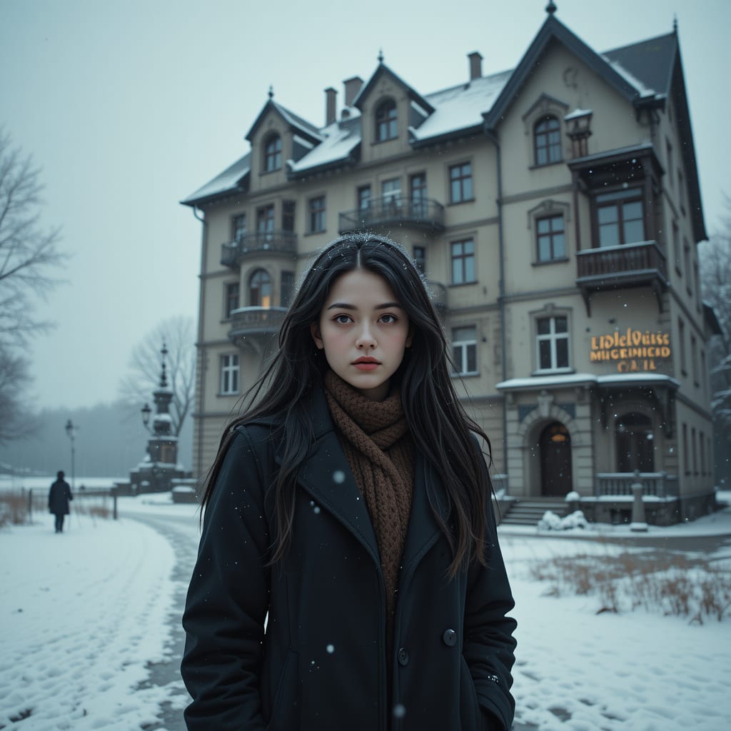 The apartment building stood near the edge of the frozen lake, tall and quiet. Its faded white walls had turned gray with age, and a lattice of bare vines clung to its stone exterior. An old plaque near the door read: Edelweiss House.