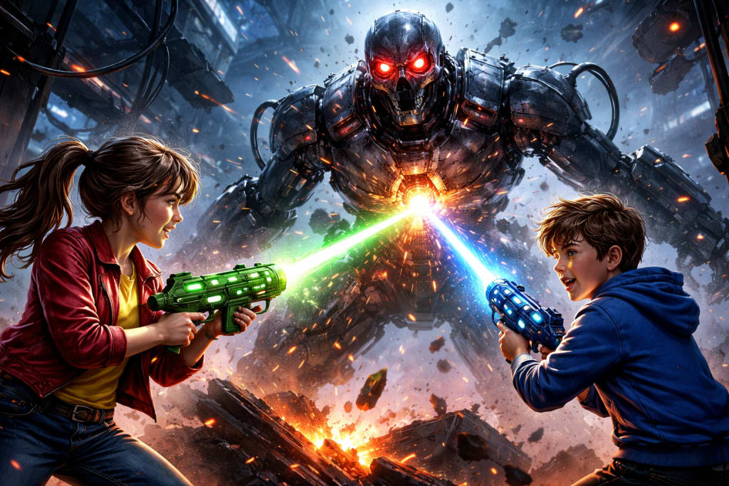 Then I saw it, the lab I had destroyed along with the resources on my first journey to Earth, was just there, like I had never destroyed it. It looked all, brand new, and old-fashioned. Inside I saw 100s of AIs already made, to be exact, 400 AIs joining the 200 AIs that already existed. In total there were now 600 of them. I cornered them and started blasting all of them with Gazzer.