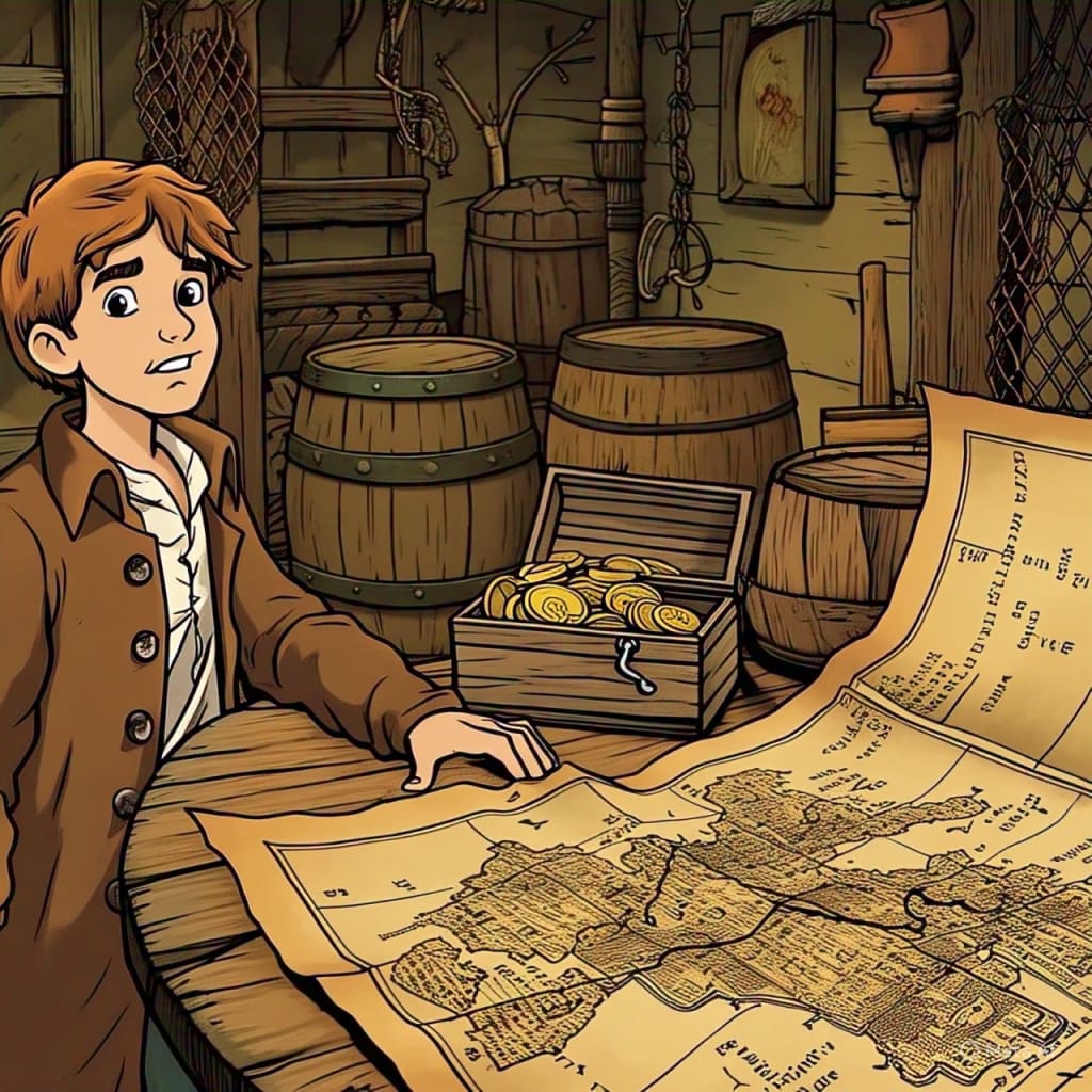 As they finally discovered the treasure, Jim realized that the real treasure was not gold or riches but the experiences, friendships, and lessons learned along the way. The journey had transformed him, teaching him to stand up for himself and trust his instincts. He had grown from a young boy into a brave and resourceful young man, ready to face whatever challenges lay ahead.