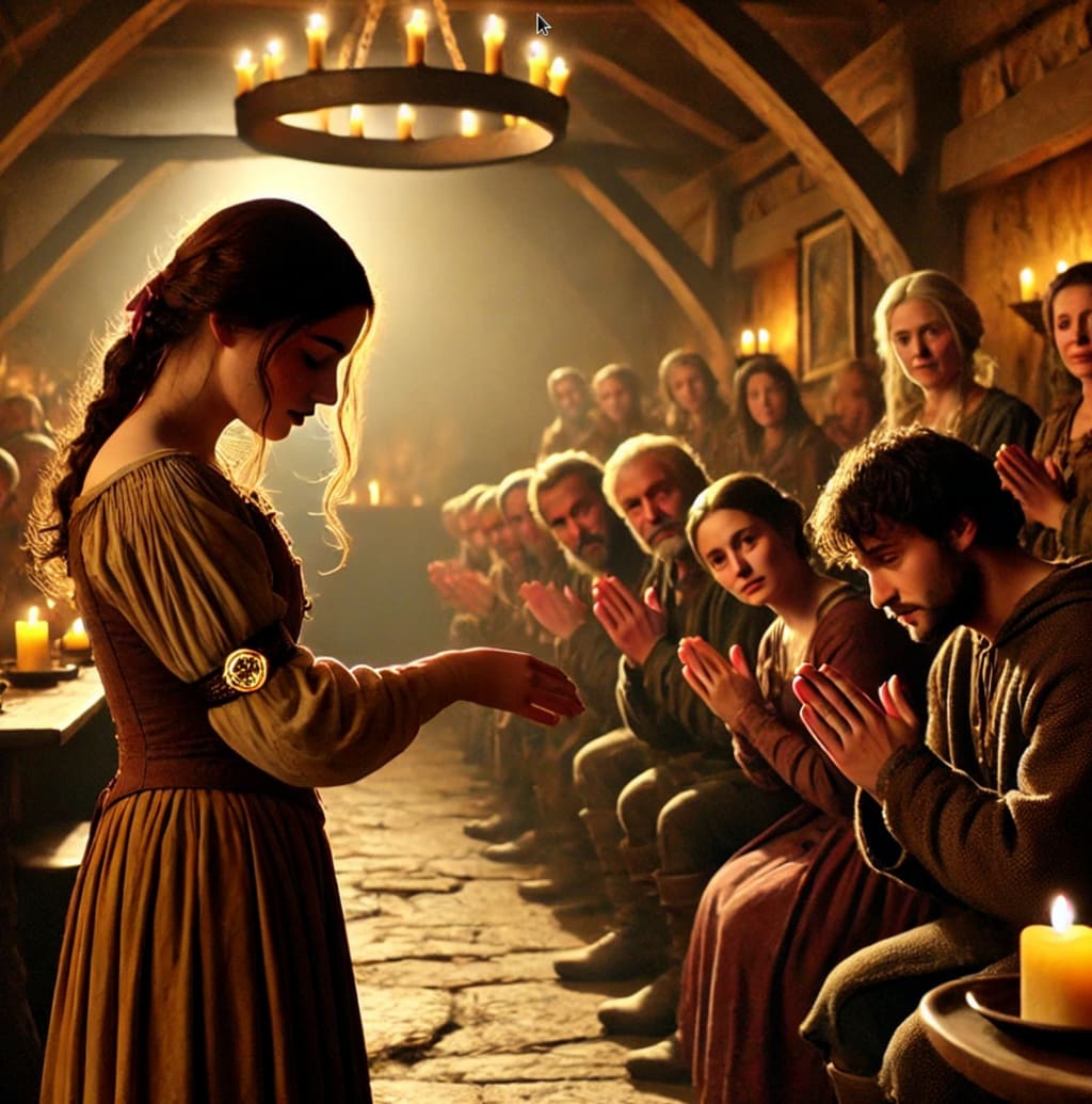Paul came in from his trip outside. He looked puzzled at the standing people around Anna and the old woman. The women were now curtseying to Anna as she returned to the table where Paul was sitting again.