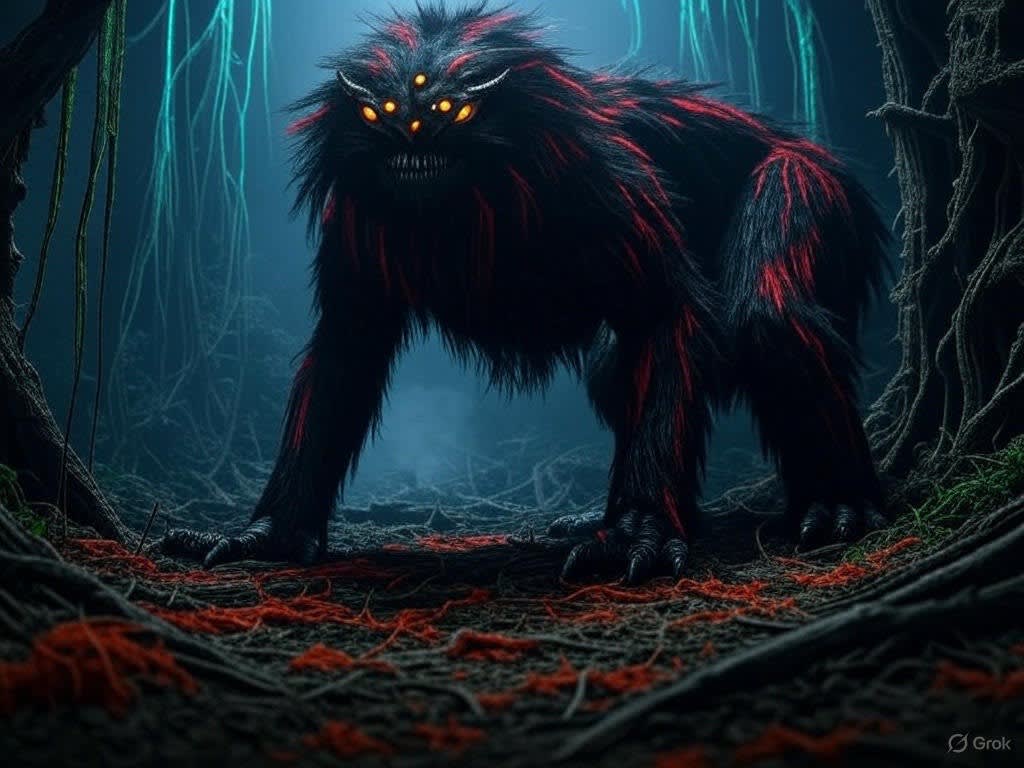 In Telekinon’s untamed jungles, where bioluminescent vines pulse and tall trees sway in the thick, fear has long ruled. Varkhul packs, their charcoal-gray fur streaked with silver, stalk the shadows, their 5-foot frames leaping 18 feet to tear through human flesh. Above, Valks with 12-foot obsidian wings screech, their telescopic eyes spotting prey 5 miles away, guiding the packs with ultrasonic pulses. At the heart of each pack looms a Grim Varkhul, 7 feet of jet-black terror, its crimson-streaked fur and bone-crushing teeth a death sentence. For generations, these beasts have driven humans to hide in deep caves or beneath forest canopies, their lives dictated by the predators’ hunger. Human’s aren’t the top of the food chain at Telekinon.