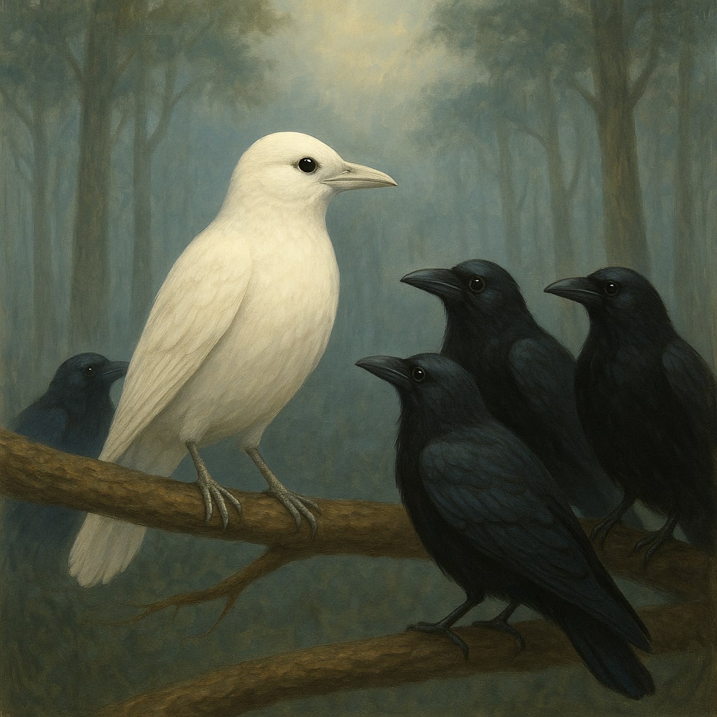 The white crow’s name was Corwin. He chirped and cawed like the others, flew with the same strong wings, and learned the tricks of survival just as fast—perhaps faster. But it didn’t matter. Wherever he went, his difference followed him. The black crows kept their distance, calling him names like "ghost-wing" and "cloud-beak." They mimicked him when he spoke and laughed when he failed. Corwin tried to ignore them, but deep down, he felt the weight of his difference like a stone in his chest.