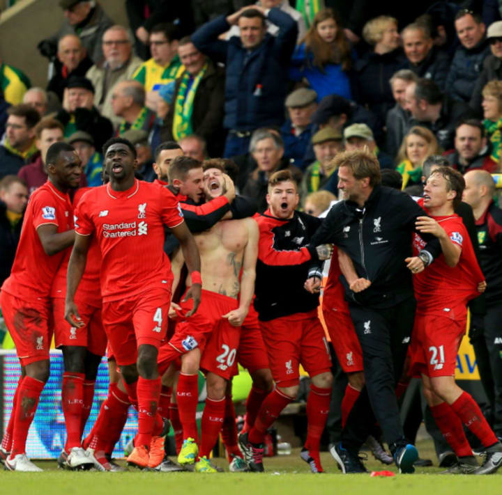 Liverpool looked out of the game when they went 3-1 down to Norwich City. But within 20 minutes, goals from Henderson, Firmino, and Milner gave them a 4-3 lead. Bassong equalised for Norwich in stoppage time, but Adam Lallana smashed home a dramatic 95th-minute winner. It was the greatest comeback in that season for Liverpool and a match full of twists.
