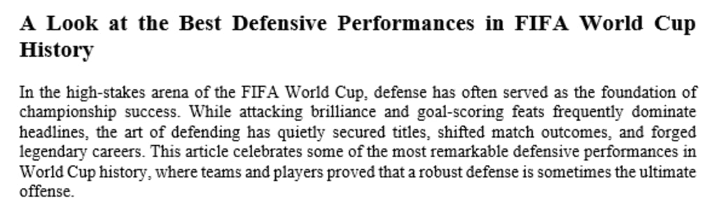 A Look at the Best Defensive Performances in FIFA World Cup History