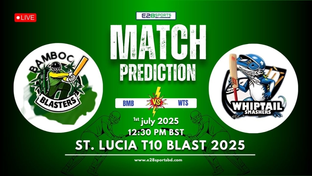 The 14th T10 match of the tournament brings together two competitive sides Bamboo Blasters vs Whiptail Smashers. As fans prepare for another exciting clash, both teams aim to make a strong statement on the field. While Whiptail Smashers have shown glimpses of brilliance, Bamboo Blasters appear to be the stronger team heading into this encounter.