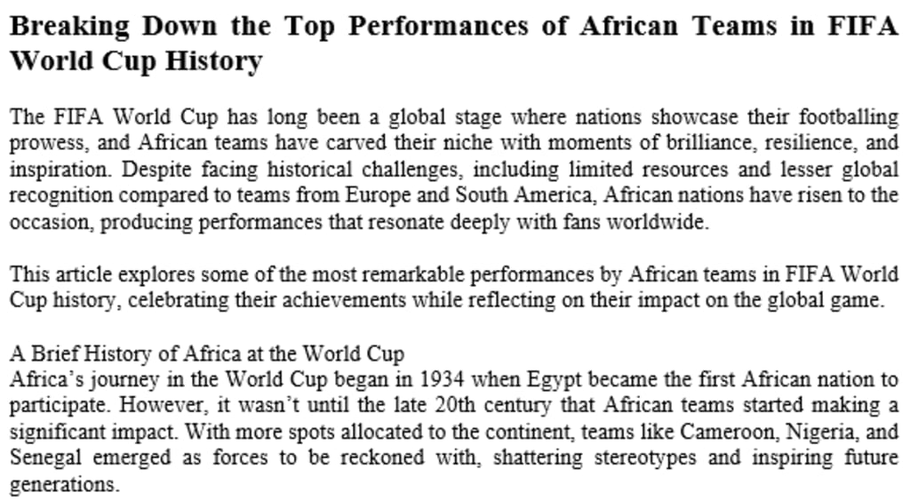 The Legacy of African Teams in the World Cup