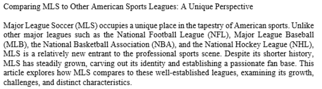 Comparing MLS to Other American Sports Leagues: A Unique Perspective