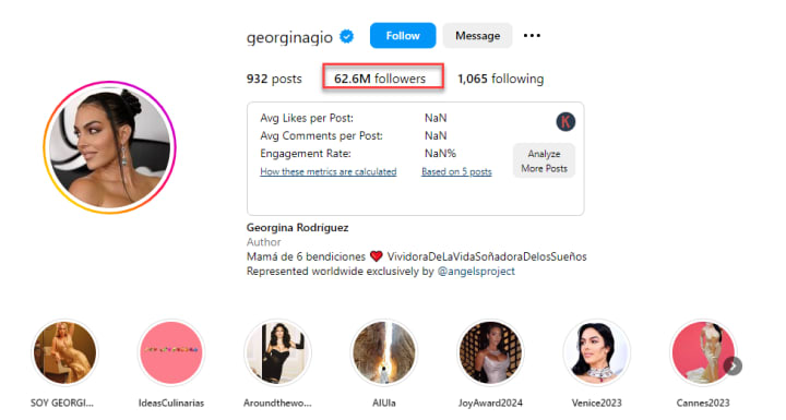 Georgina’s Social Media Stats Number of Followers
