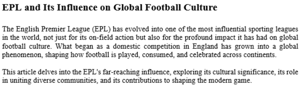 EPL and Its Influence on Global Football Culture