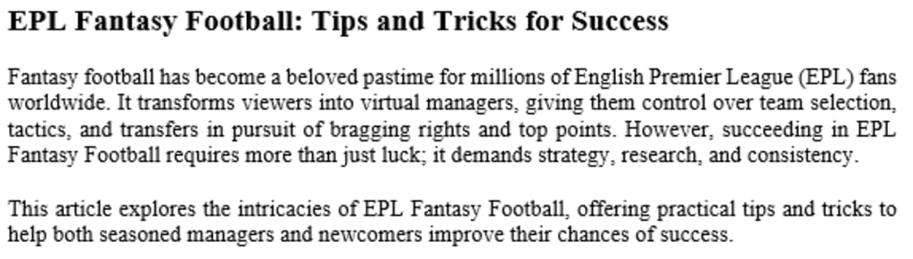 So, assemble your squad, plan your strategies, and enjoy the rollercoaster ride that is EPL Fantasy Football. It is not just a game; it is a test of passion, knowledge, and resilience.