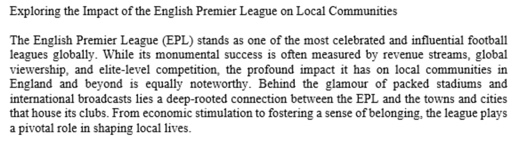 Exploring the Impact of the English Premier League on Local Communities