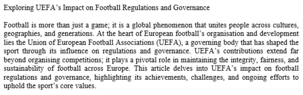The Role of UEFA in Football Governance