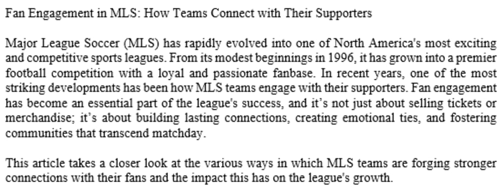 This article takes a closer look at the various ways in which MLS teams are forging stronger connections with their fans and the impact this has on the league's growth.