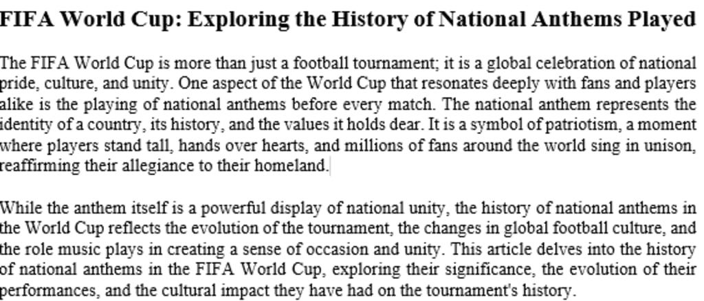 The practice of playing national anthems before international football matches, including the FIFA World Cup, serves multiple purposes. Firstly, it instils a sense of national pride and identity among players, who stand before their flag and anthem, representing not just their teams, but their entire nation. The anthem is a moment of reflection, reminding the players of the honour they carry as they step onto the field. For the fans, it serves as an emotional connection, a chance to chant the lyrics they hold so dearly, and to show support for their country.