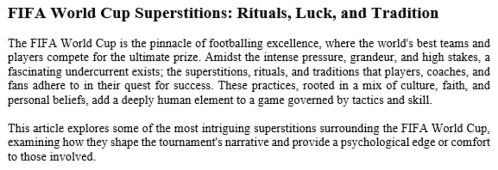 The FIFA World Cup is the pinnacle of footballing excellence, where the world's best teams and players compete for the ultimate prize. Amidst the intense pressure, grandeur, and high stakes, a fascinating undercurrent exists; the superstitions, rituals, and traditions that players, coaches, and fans adhere to in their quest for success. These practices, rooted in a mix of culture, faith, and personal beliefs, add a deeply human element to a game governed by tactics and skill.