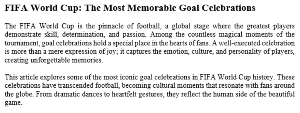 This article explores some of the most iconic goal celebrations in FIFA World Cup history. These celebrations have transcended football, becoming cultural moments that resonate with fans around the globe. From dramatic dances to heartfelt gestures, they reflect the human side of the beautiful game.