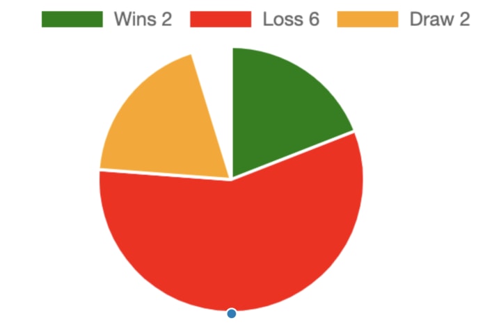 Crystal Palace in their last 10 match(s) have won 2 match(s), whereas they have lost 6 match(s) and they managed to draw 2 match(s)