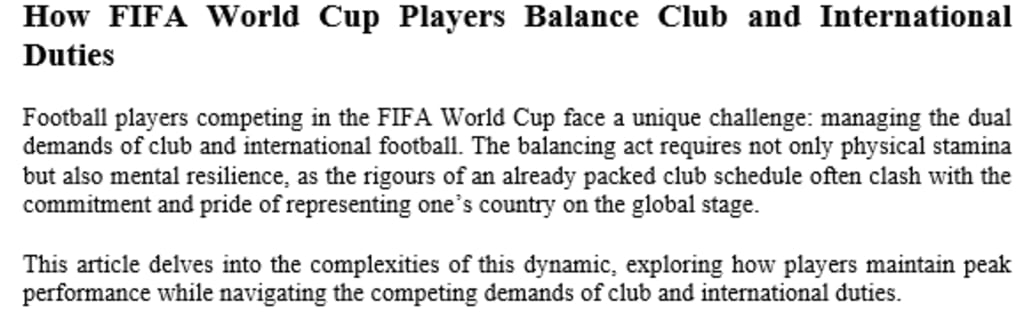 Football players competing in the FIFA World Cup face a unique challenge: managing the dual demands of club and international football. The balancing act requires not only physical stamina but also mental resilience, as the rigours of an already packed club schedule often clash with the commitment and pride of representing one’s country on the global stage.