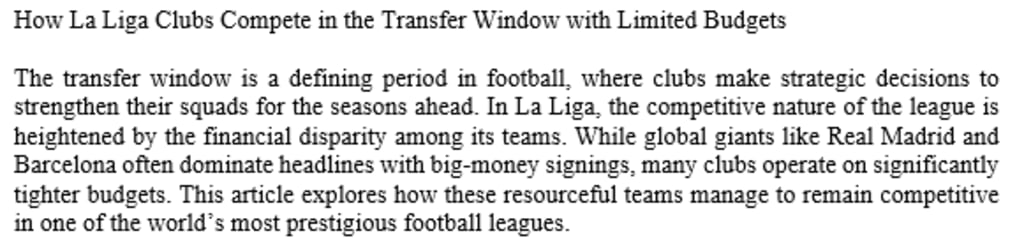 The transfer window is a challenging yet exciting time for La Liga clubs, especially those with limited budgets. Through a combination of talent development, smart scouting, strategic partnerships, and financial acumen, these clubs continue to compete in a league dominated by financial powerhouses. Their resourcefulness not only keeps the league competitive but also adds to the richness and unpredictability of Spanish football.
