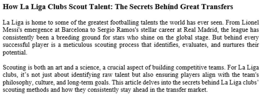Scouting is both an art and a science, a crucial aspect of building competitive teams. For La Liga clubs, it’s not just about identifying raw talent but also ensuring players align with the team's philosophy, culture, and long-term goals. This article delves into the secrets behind La Liga clubs’ scouting methods and how they consistently stay ahead in the transfer market.