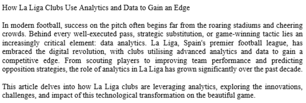 In modern football, success on the pitch often begins far from the roaring stadiums and cheering crowds. Behind every well-executed pass, strategic substitution, or game-winning tactic lies an increasingly critical element: data analytics. La Liga, Spain's premier football league, has embraced the digital revolution, with clubs utilising advanced analytics and data to gain a competitive edge. From scouting players to improving team performance and predicting opposition strategies, the role of analytics in La Liga has grown significantly over the past decade.
