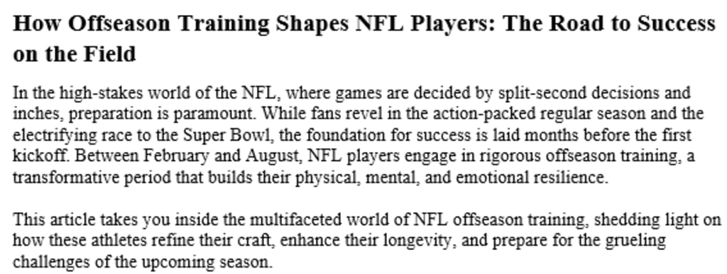 How Offseason Training Shapes NFL Players: The Road to Success on the Field