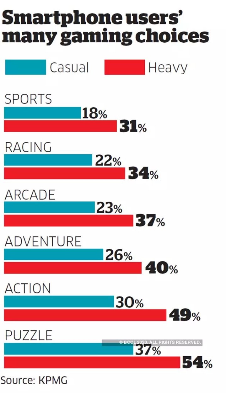 The number of users who are using smartphones for casual gaming is less compared to massive gamers. It shows the user behavior and pattern in the mobile games app market today. The below statistics shows the size of the market.