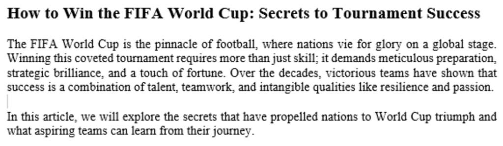 In this article, we will explore the secrets that have propelled nations to World Cup triumph and what aspiring teams can learn from their journey.